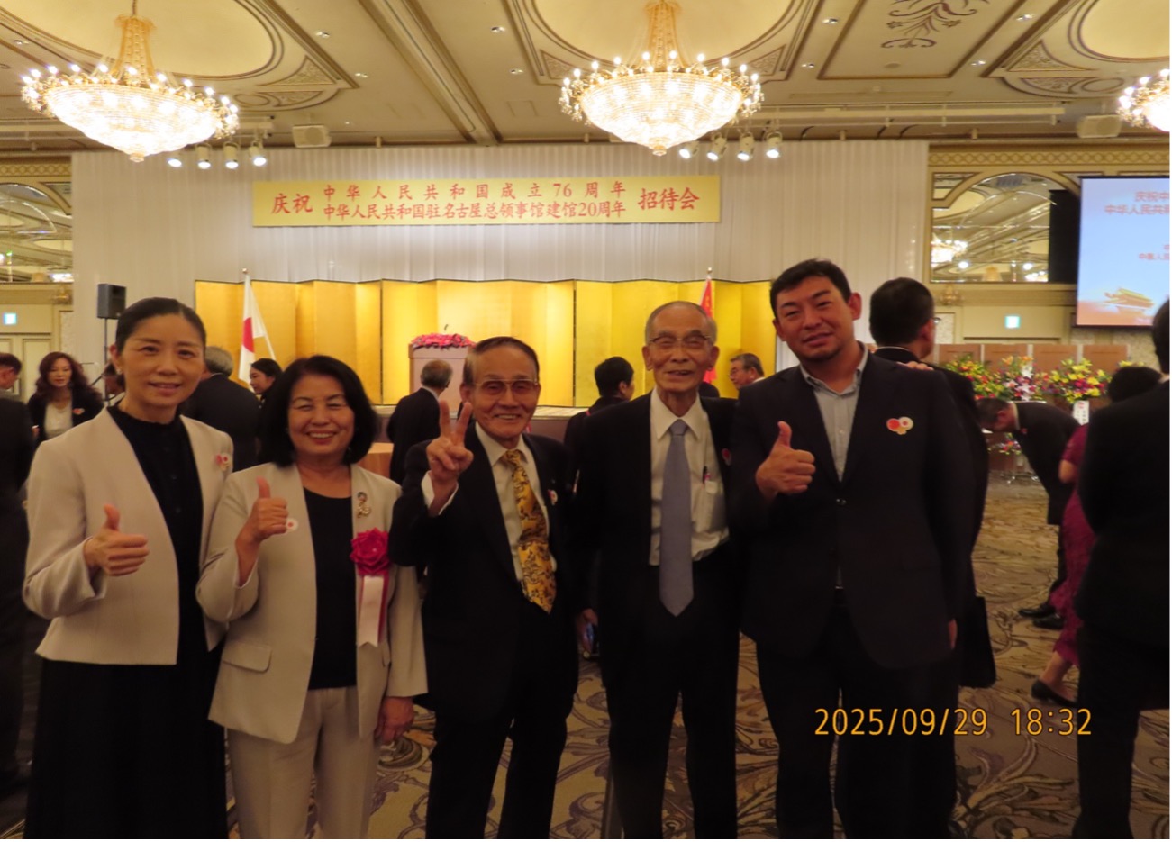 2025年9月29日(月)に、中華人民共和国成立76周年・駐名古屋総領事館創設20周年祝賀会に、朴 恵淑三重県日中友好協会の副会長で、「三重GPN」代表幹事(会長)・三重大学地域イノベーション学研究科客員教授、小宮一郎理事長、三重県日中友好協会の関係者が参加し、中華人民共和国駐名古屋総領事館の楊 嫻総領事をはじめ、関係者との緊密な友好関係を深めました。