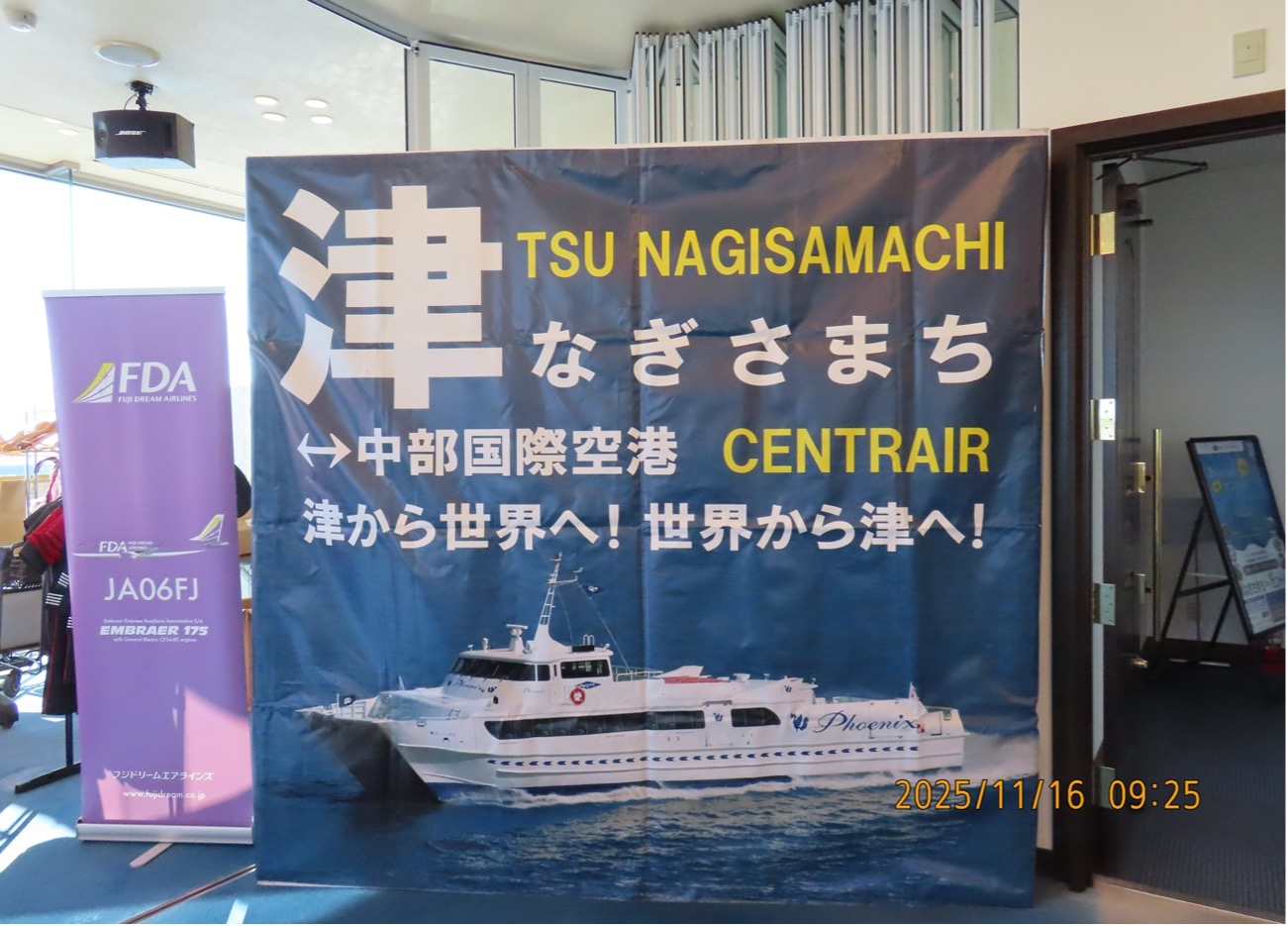 「津なぎさまち」は、中部国際空港の開港に合わせて、2005年2月17日に、高速船による海場アクセス拠点として開港されており、2025年2月に開港20周年を迎えることとなり、高速船の乗船客は述べ500万人を超えています。津の港は、かつて「安濃津」と言われ、日本三津の一つとして重要な港だったが、1498年の明応の大地震によって港の機能が失われていたが、「津なぎさまち」の開港により、500年ぶりの復活となりました。「津なぎさまち」は、三重県唯一の海の道として、高速船で中部国際空港を約45分で繋げられる便利さから、これからの発展的展開が最も期待できる港であります。特に、「津なぎさまち」は、世界と繋がる港である利点を生かし、三重県のインバウンド観光のハイライトとなる伊勢神宮、伊勢志摩(鳥羽)、熊野古道を繋ぐ交通の結節点としての機能も多く期待されています。