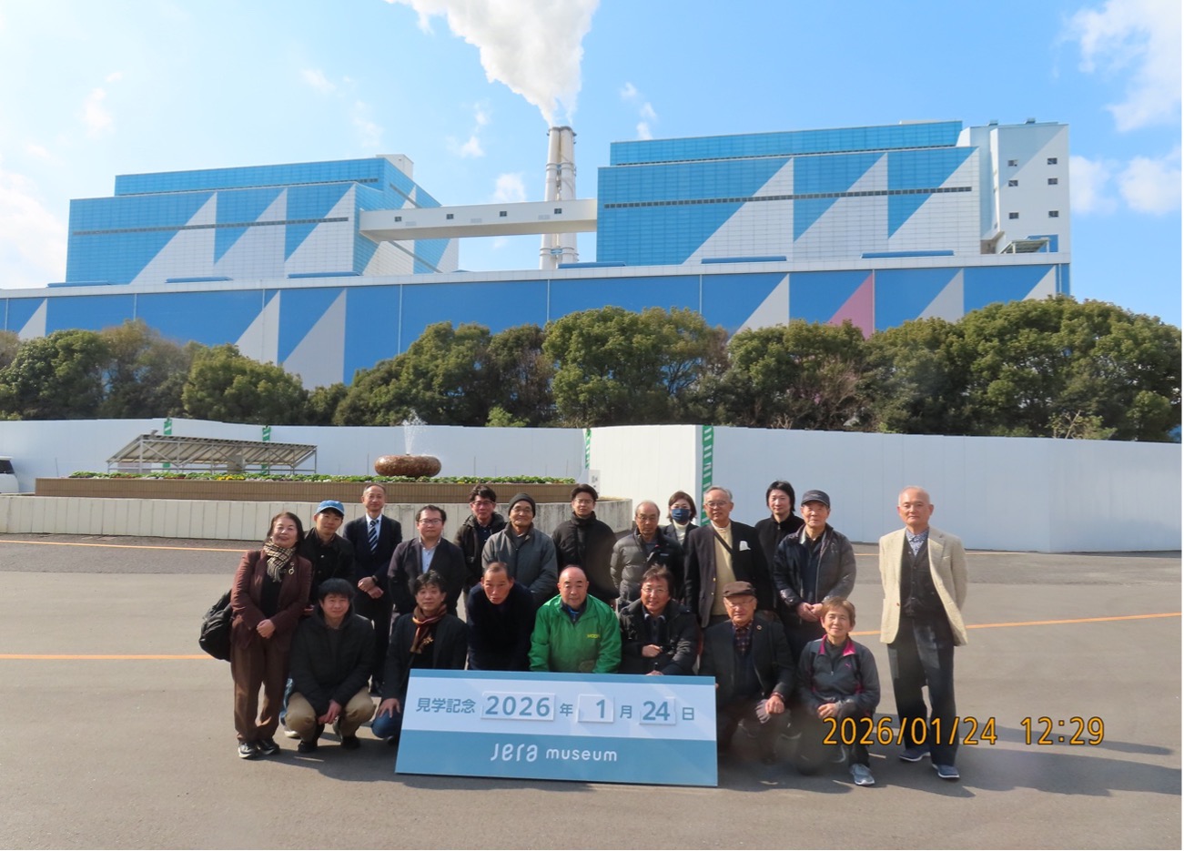 2026年1月24日(土)に、中部電力(株)「JERA碧南火力発電所」見学会を企画し、朴 恵淑三重大学地域イノベーション学研究科客員教授・名誉教授/三重グリーン購入ネットワーク(三重GPN)代表幹事と安部大樹三重大学人文学部特任助教/三重グリーン購入ネットワーク(三重GPN)事務局メンバーを中心に、三重大学教員と学生/三重GPN会員/三重県地球温暖化防止活動推進員の18名が、中部電力(株)総務・広報・地域共生本部の桑原一孝環境グループ長と水谷容子様の協力を得て行いました。